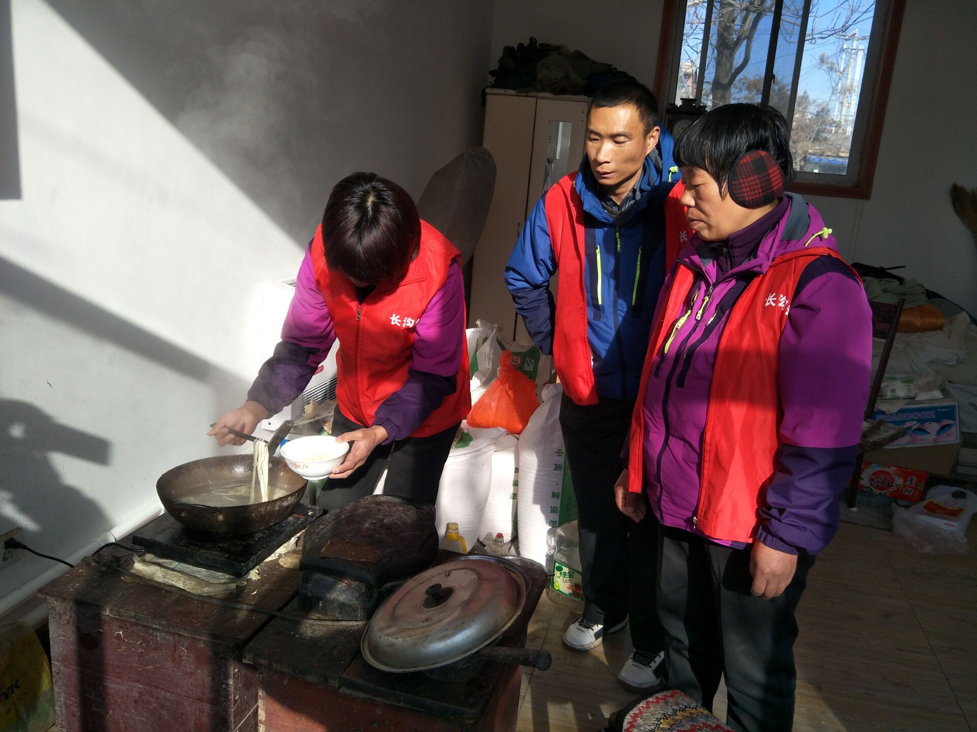 康复对象冒着寒冷的天气来到了北正村一位卧床重残老人的家里,与老人聊天,了解了老人在生活中遇到的困难,重残老人说,每天照顾她的是有精神残疾的儿子,所以想吃一顿可口的饭,对她来说是一种奢望。然后在大家分工合作的忙碌下,给残疾老人做了一顿可口的西红柿打撸面,并且为她修剪了头发,老人对他们这种积极主动的、助人为乐的精神而感动。